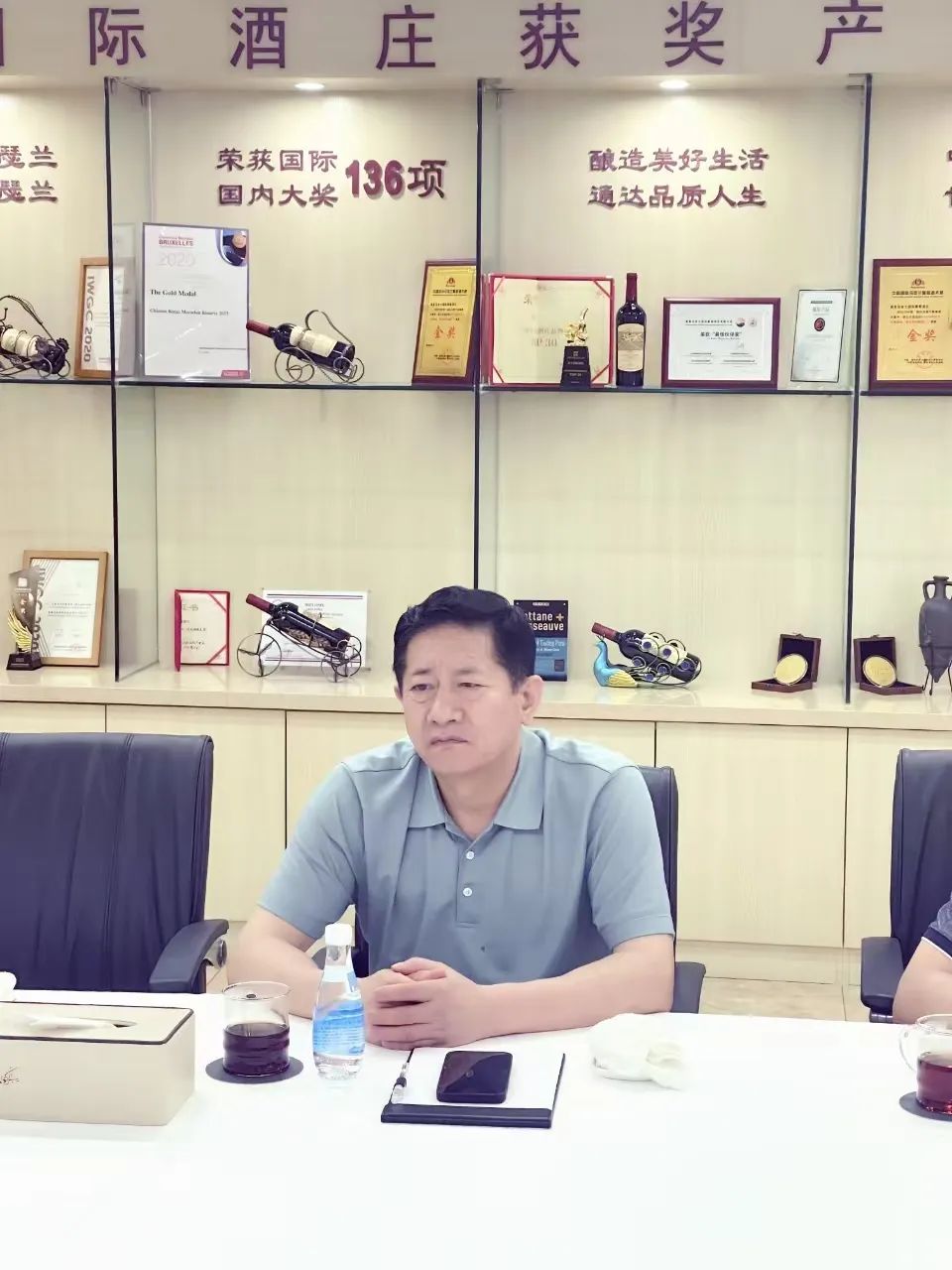 在考察金士國際葡萄酒莊的過程中,滕和顯主席一行對酒莊進行了詳盡、全面的了解,并對酒莊多年來成熟的發展模式與經營規模給予高度評價。