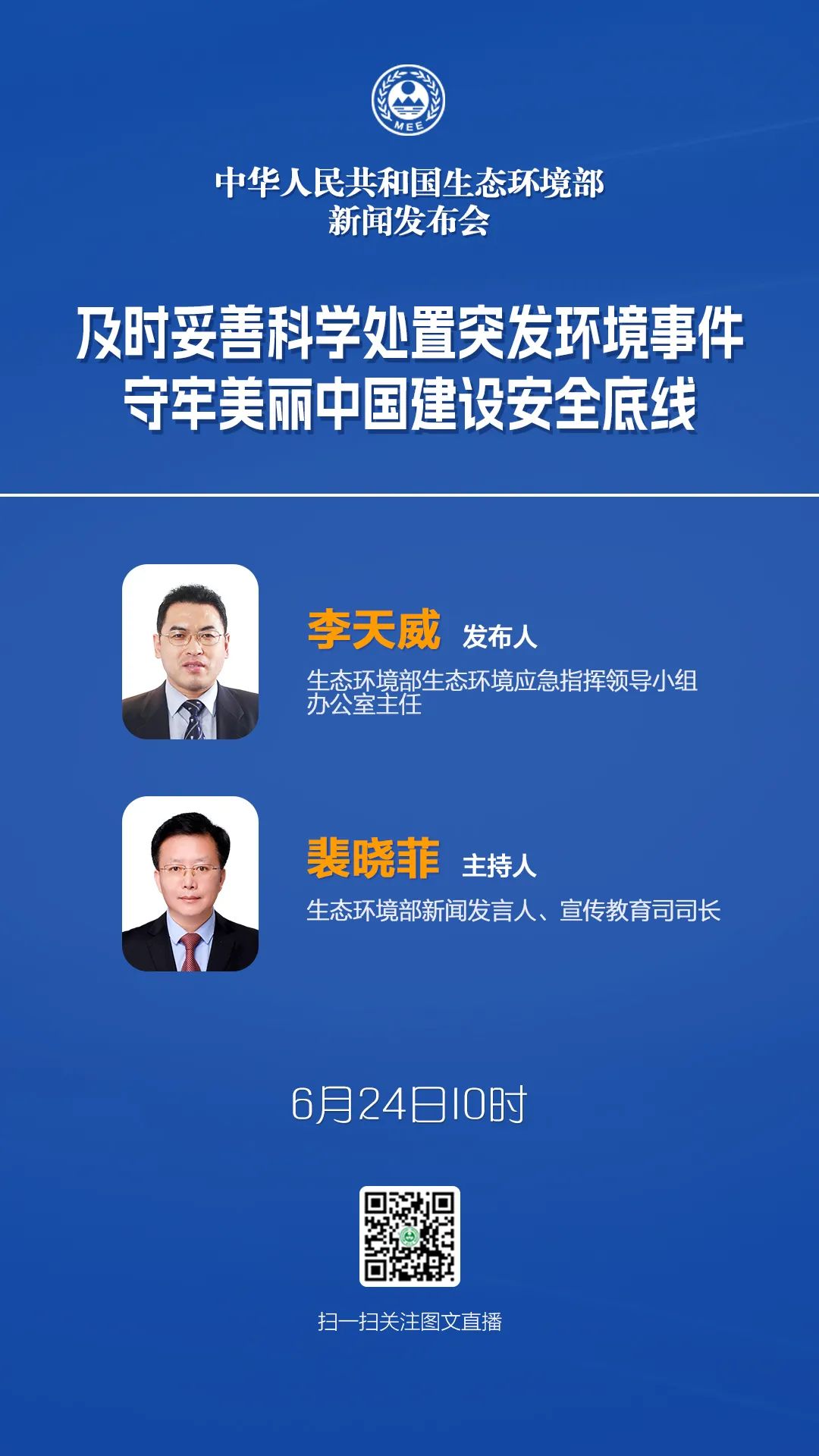 預告丨6月24日10時生態環境部將舉行例行新聞發布會